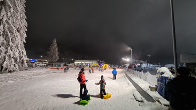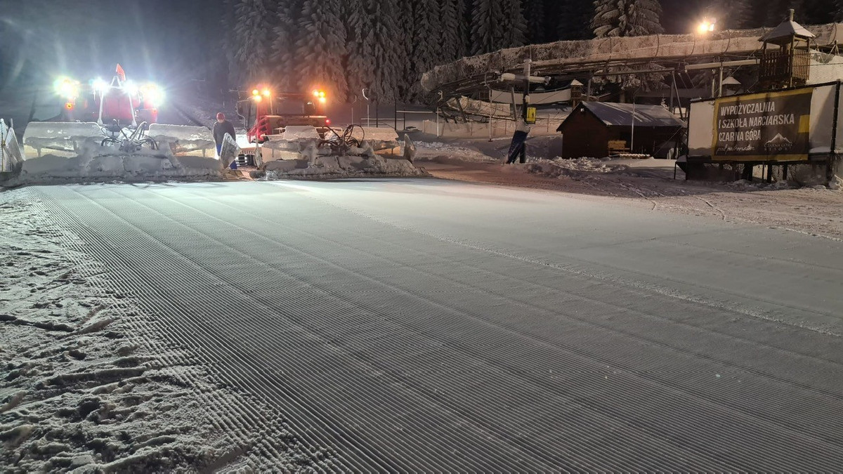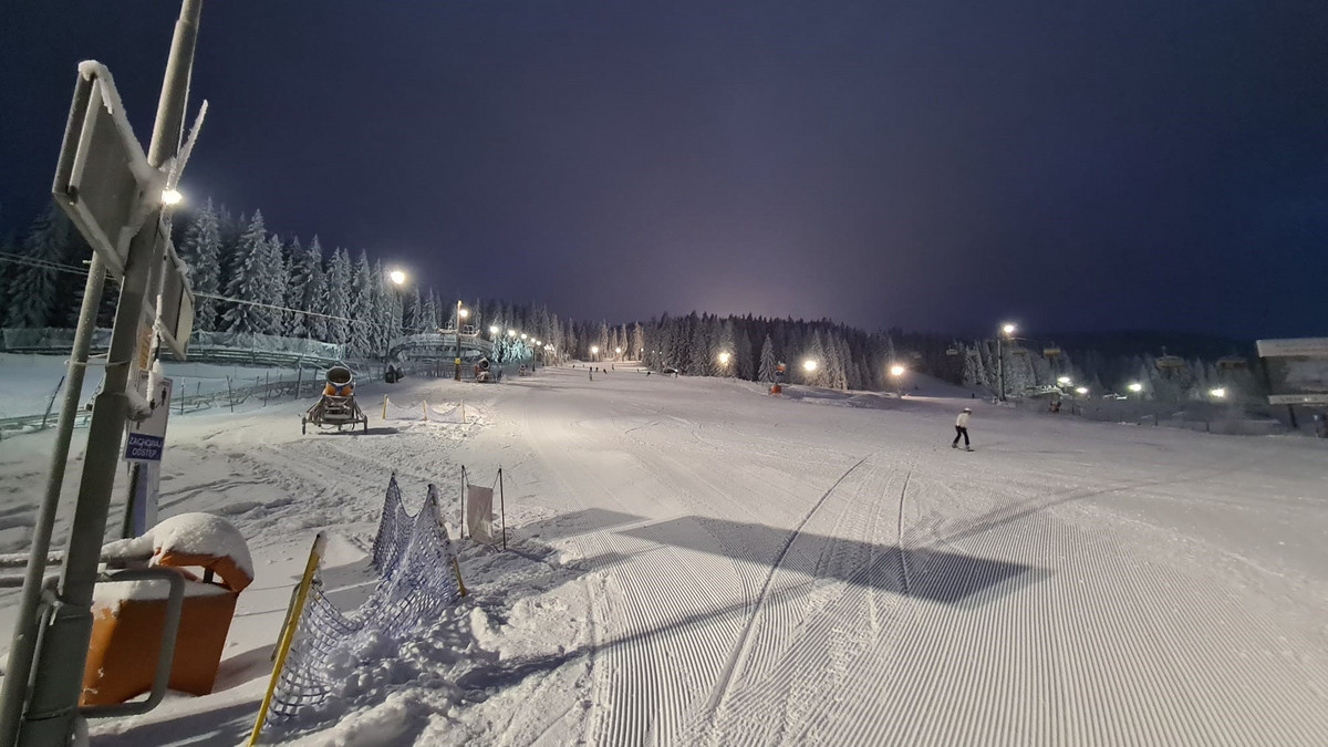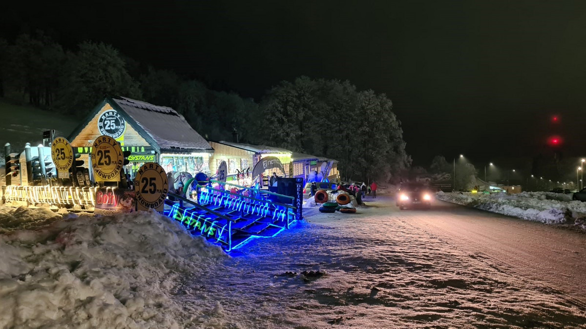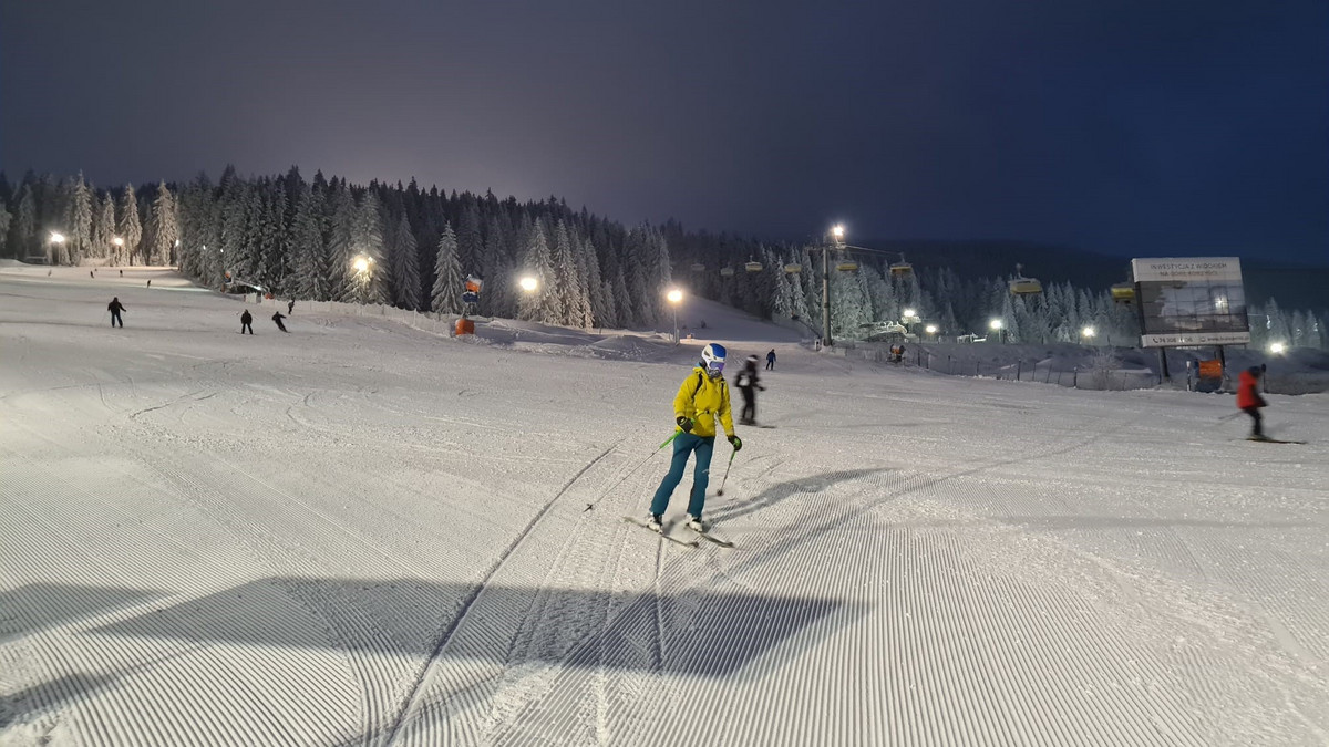 Resort Czarna Góra w wieczornym klimacie. Trasa bardzo dobrze przygotowana i oświetlona. W razie potrzeby można ogrzać się w barach na dole. Poziom trasy: dla każdego.