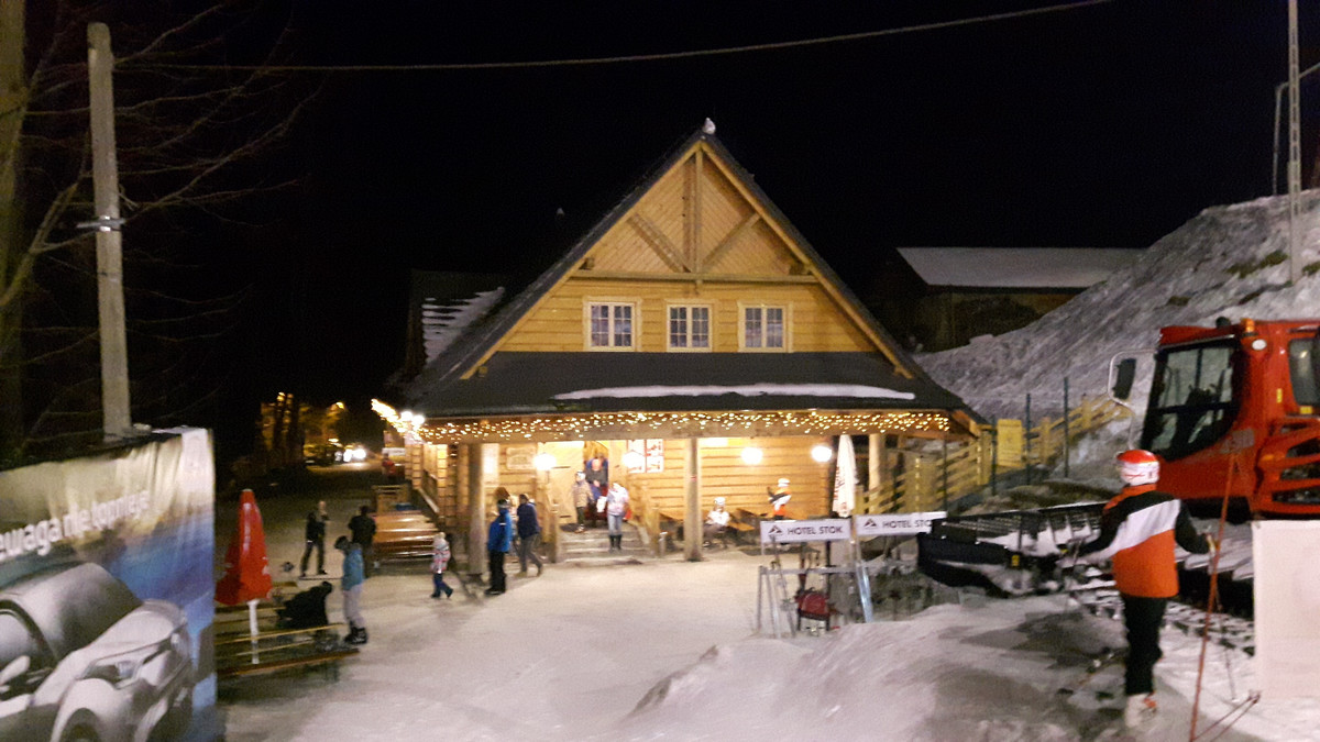 Stok Stacja Narciarska - 2017 02 15 Przy wahaniach temperatur, od dodatnich w ciągu dnia i ujemnych w nocy, stok stał się zdecydowanie twardszy, co nie zmienia faktu, że dalej panują na nim bardzo dobre warunki narciarskie.