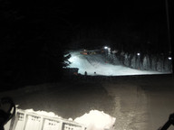 Nocne narty w Południowym Tyrolu- widok z schroniska na trasę