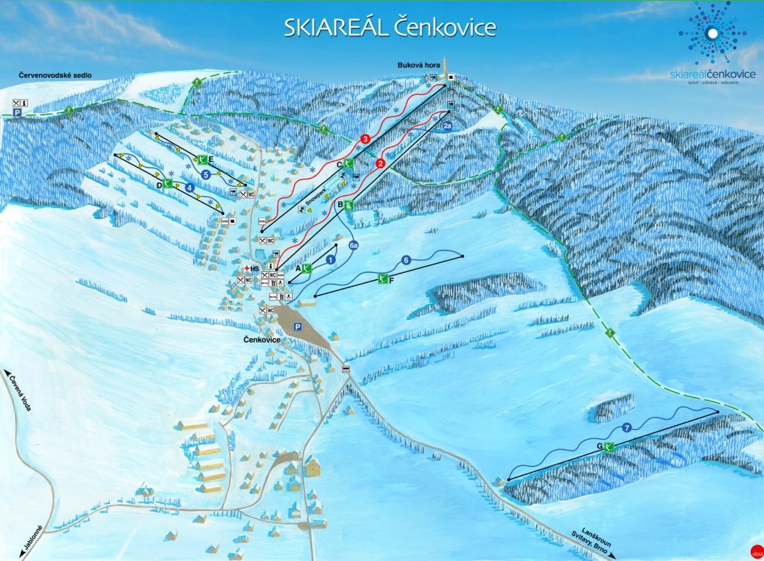 Informacje o ośrodku: Cenkovice mieszczą się w cichej i spokojnej części gór Orlich, na wysokości 750 - 950 m.n.p.m. Infrastruktura narciarska i snowboardowa: Centrum narciarskie oferuje kilka wyciągów oraz kilkanaście tras zjazdowych, idealnych zarówno dla początkujących narciarzy, jak i w miarę zaawansowanych. Łączna przepustowość wyciągów mieści się w granicach 5000os/godz. Znajdują się tutaj również: Kiosk z przekąskami / bufet, przechowalnia nart, snowpark, szkółka narciarska, szkółka nauki jazdy na nartach dla małych dzieci, wypożyczalnia nart i snowboardów.