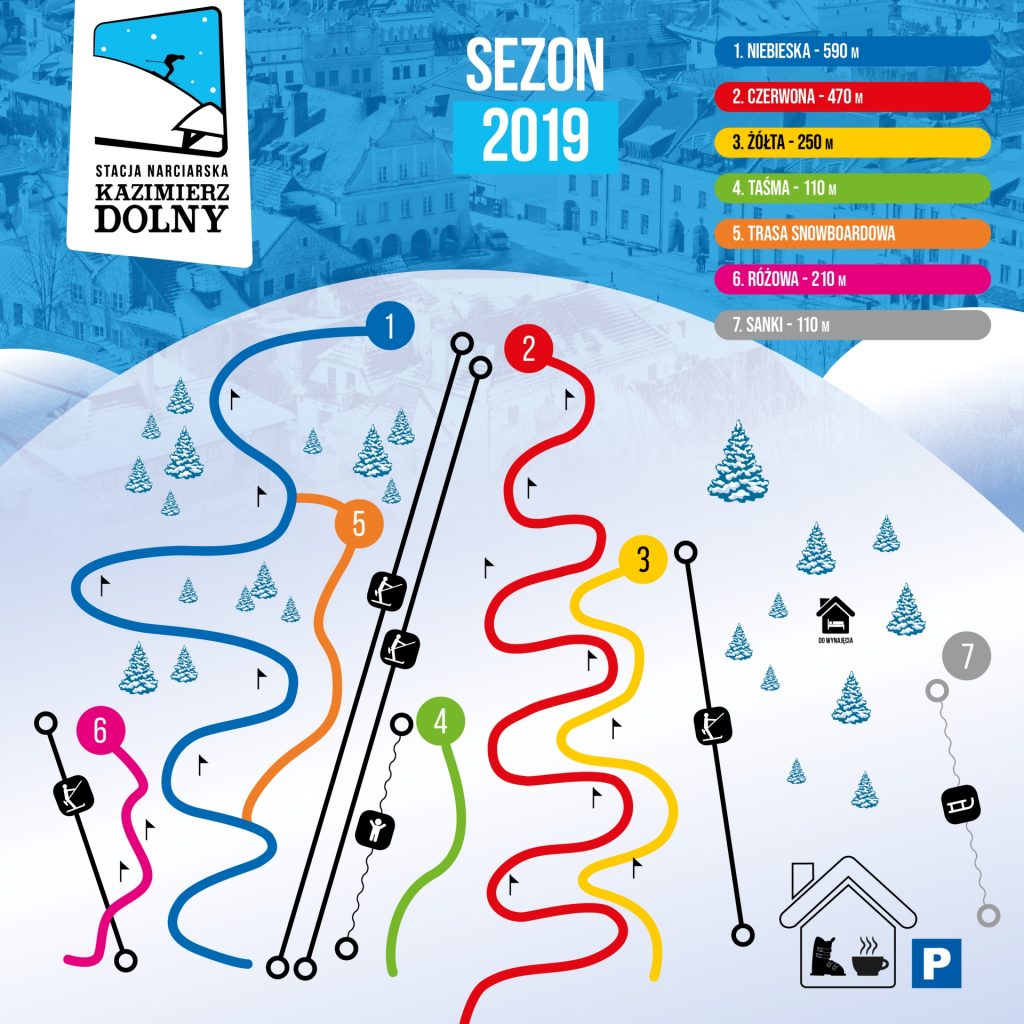 Informacje o ośrodku: - codziennie ratrakowany - regularnie naśnieżany - sztucznie oświetlony dzięki czemu można korzystać z tras nawet po zmroku - punkty gastronomiczne, które oferują gorące posiłki, ciepłą kawę i nie tylko - wypożyczalnia sprzętu dla doświadczonych i początkujących narciarzy - własny parking Ośrodek znajduje się około 10 kilometrów od Puław, 70 kilometrów od Radomia, 50 kilometrów od Lublina i 130 kilometrów od Warszawy