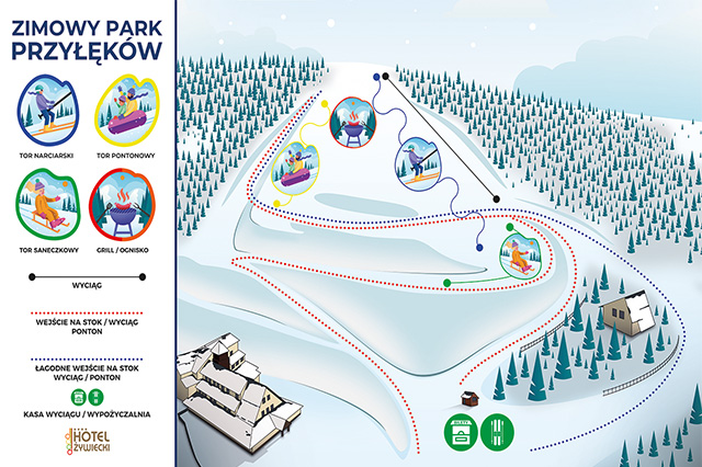 Zimowy Park Przyłęków został stworzony nie tylko dla osób jeżdżących na nartach , czy desce , ale również dla rodzin z dziećmi jako forma spędzenia wolnego czasu na świeżym powietrzu. Do Waszej dyspozycji oddajemy :