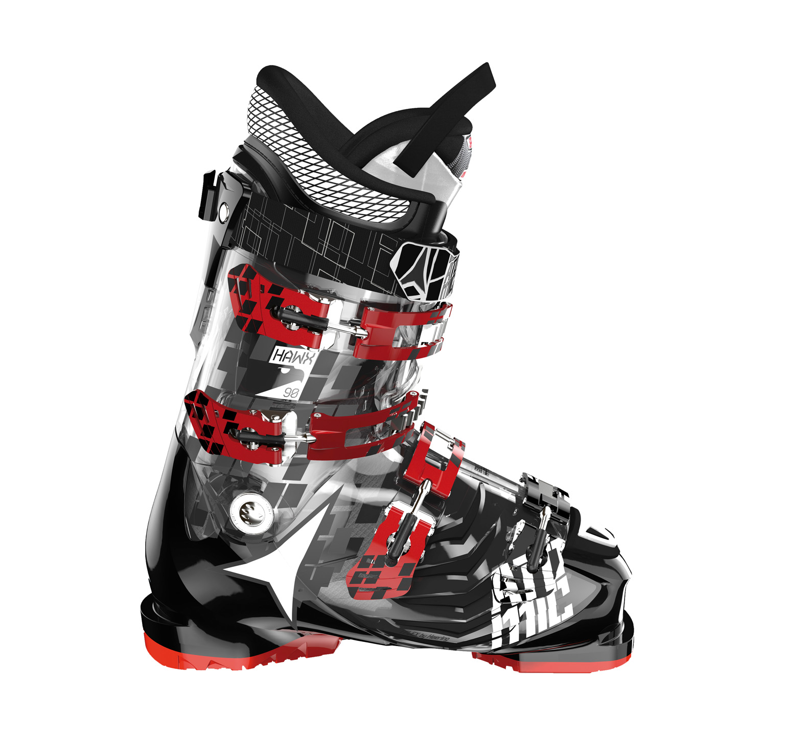 | Model Hawx 90 posiada umiarkowany flex oraz precyzyjne dopasowuje się do nogi dając narciarzowi poczucie bezpośredniego sterowania nartami, co czyni go ideaną propozycją zarówno dla początkujących jak i zaawansowanych narciarzy. Istotę rozwiązania stanowią innowacyjne strefy i-Flex, które jak dodatkowy staw, umożliwiają naturalne poruszanie się przedniej części stopy.