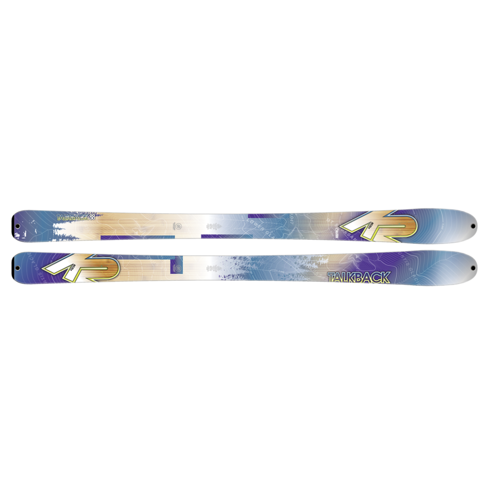 | The K2 Talkback 88 is the picture of backcountry efficiency. A trimmer 88mm waist and lighter ECOre of balsa and flax makes for practically effortless ascents and extra hip-swivel in your favorite gladed stash. This classic K2 All Terrain Rocker shape and blended sidewall construction are tied together by a thoughtfully placed carbon web across the fore body and tail of the ski for additional rigidity. | |