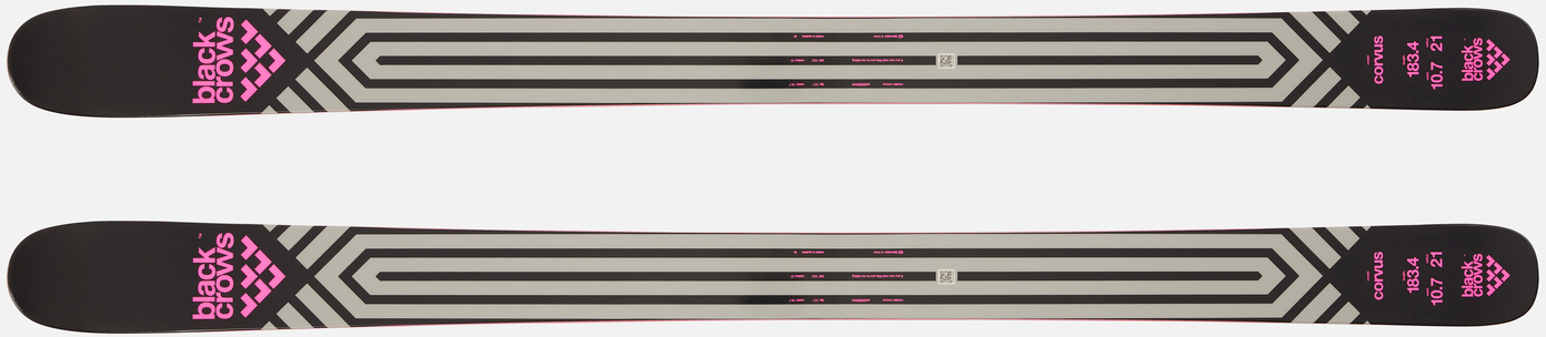 | Ten kultowy model Black Crows, Corvus pozostaje strażnikiem gniazda z jego alpejskim DNA połączonym z odwróconym camberem. Przeznaczony do freeride'u, Corvus ma bardzo dobry pivot dzięki odwróconemu camberowi i bardzo mocne trzymanie na twardym śniegu dzięki płaskiemu segmentowi pod stopami i podwójnej płycie titanal. Narta jest mocna i dobrze trzyma się podłoża. Jak zawsze gotowy do walki, Corvus dzięki swojej równowadze oferuje większą pewność siebie w każdym terenie. | |