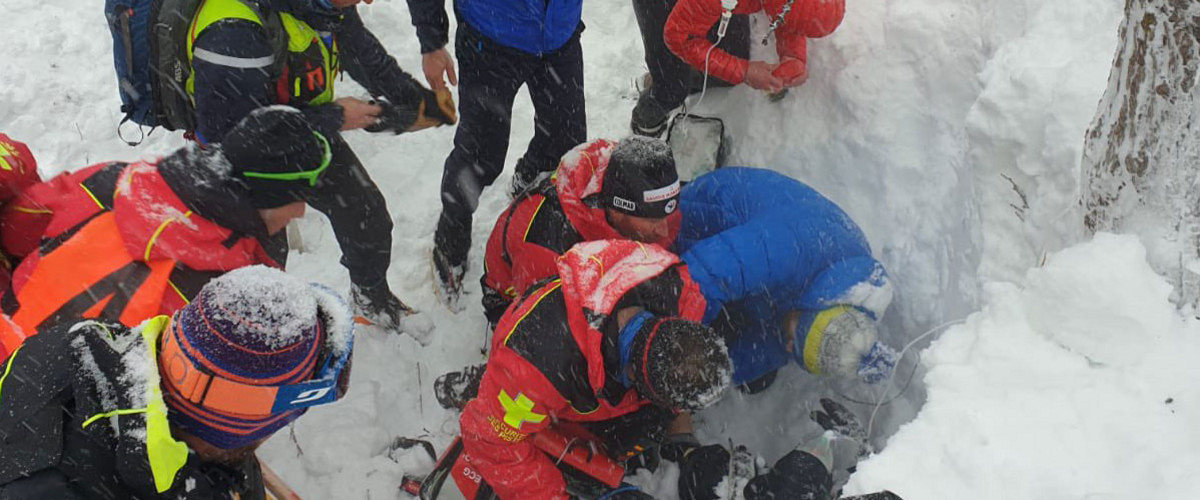 O niesamowitym wręcz szczęściu może mówić francuska rodzina, która w ubiegły czwartek (28 02 2021) wybrała się w rejonie Val d`Isere na wycieczkę na rakietach śnieżnych. Rodzice z dwójką dzieci wybrali się na spacer po zaśnieżonym zboczu, nie zdając sobie sprawy z najwyższego poziomu zagrożenia lawinowego. Wydawało im się, że miejsce jest bezpieczne. Rodzina podcięła lawinę o szerokości blisko 100 metrów, na szczęście dzieci z matką nie zostały mocno poturbowane i szybko powiadomiły służby ratunkowe. Ratownicy bardzo szybko przybyli na miejsce i rozpoczęli poszukiwania – poszkodowany nie miał Piepsa lawinowego. Z upływem czasu rosła ilość ratowników malała jednocześnie szansa na uratowanie ofiary. Przyjmuje się, że po 15 minutach przebywania pod śniegiem szanse na uratowanie życia maleją o 80%. Tu mijały godziny. Po 2 godzinach i 40 minutach dzięki systemowi lokalizacji telefonów komórkowych udało się zlokalizować ofiarę. 50-letni mężczyzna został odnaleziony i odkopany spod 2,5-metrowej warstwy śniegu, poza wychłodzeniem nie doznał większych obrażeń, życie uratowało mu spore drzewo które częściowo uchroniło go przed żywiołem.