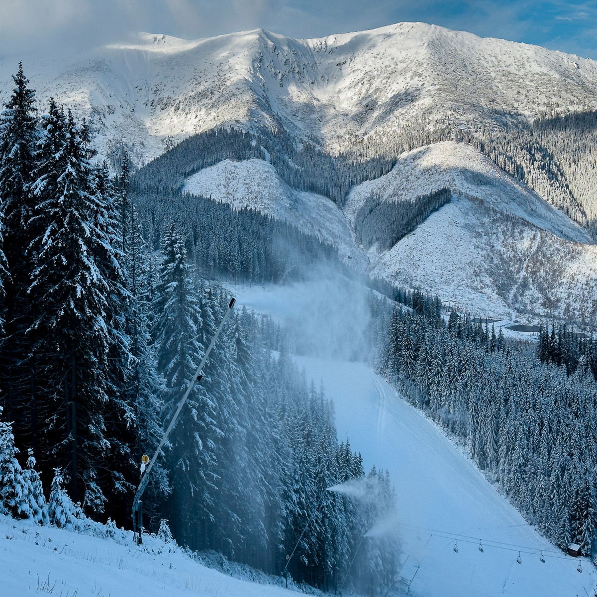 W Tatrach Wysokich również rozpoczęto naśnieżanie. „Rozpoczęliśmy naśnieżanie o północy w nocy z niedzieli na poniedziałek, warunki pozwoliły nam rozpocząć naśnieżanie pierwszej nitki od Łomnickiego Stawu w dół do stacji Start”, poinformował dyrektor ośrodka Vysoké Tatry Dušan Slavkovský.