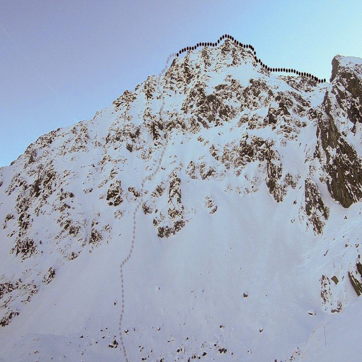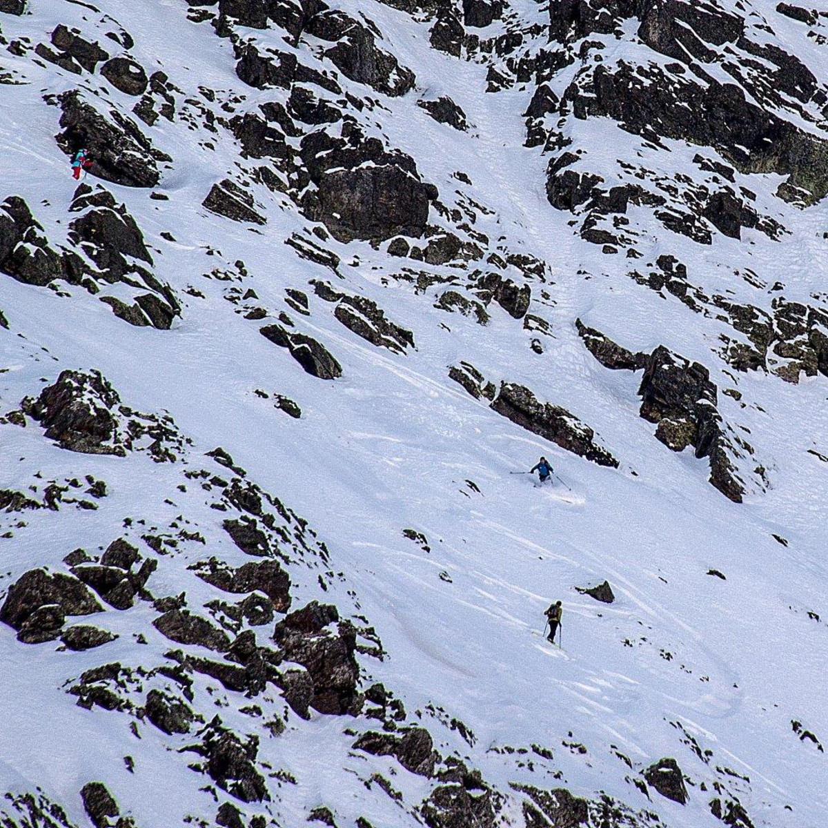 Korzystając z chwili mojej nieuwagi, czyli tego, że byłem zajęty z klientami, Jędrek zjechał dwoma żlebami ze szczytu Pic Baix del Cubil (2705 m). Obydwa znajdują się na północno-zachodniej ścianie góry. Wiele wskazuje na to, że były to pierwsze zjazdy tymi formacjami, a już na pewno lewym żlebem, który oferuje wąską nitkę śniegu z koniecznością wykonania dwóch zeskoków.