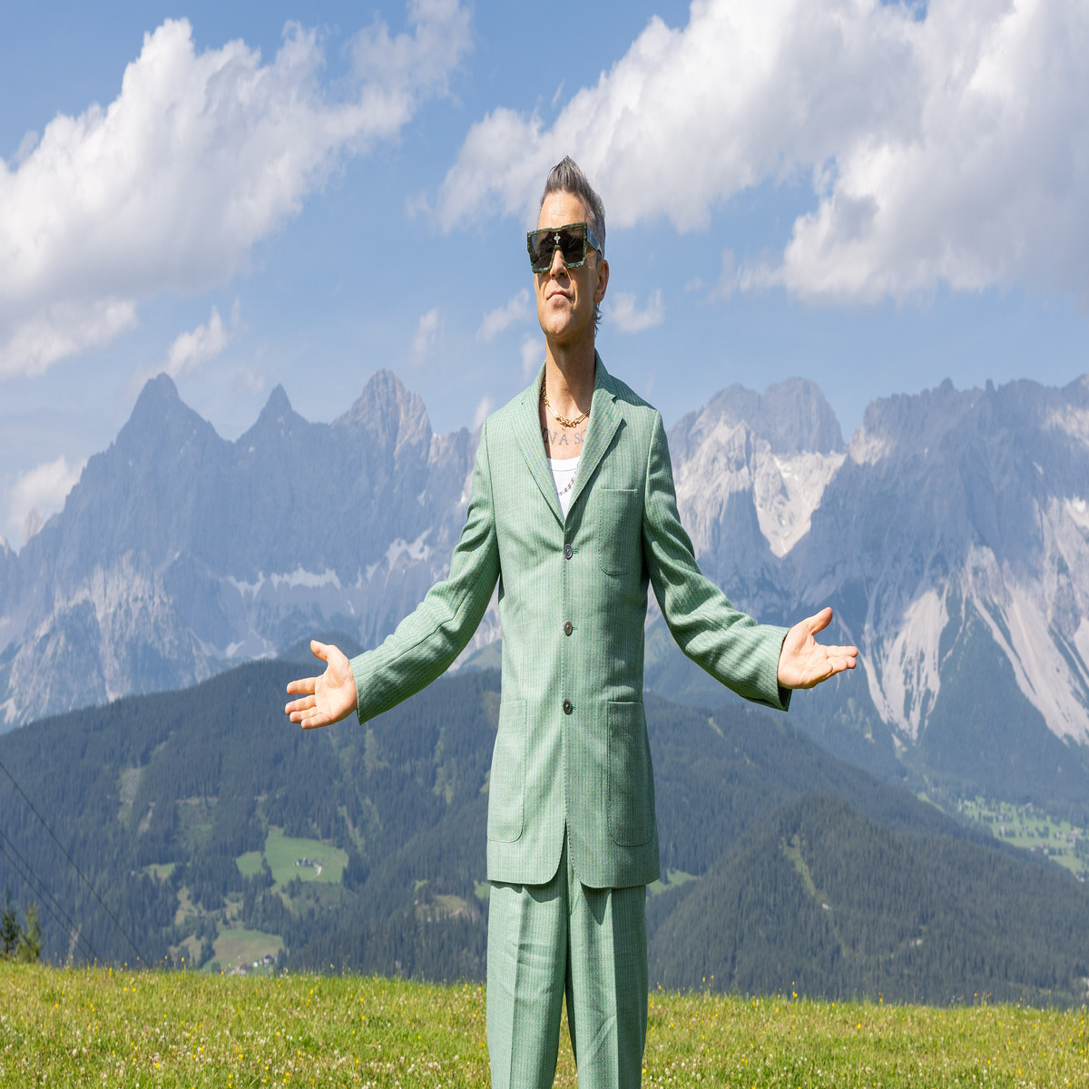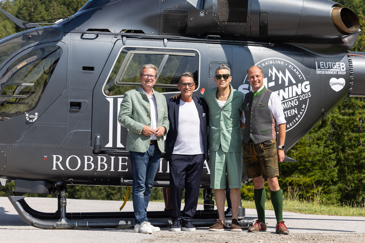 Aby zapowiedzieć te niezwykłe koncerty, Robbie Williams złożył osobistą wizytę w Reiteralm 23 lipca 2023 r. i natychmiast został oczarowany inspirującą scenerią u podnóża Dachstein.
