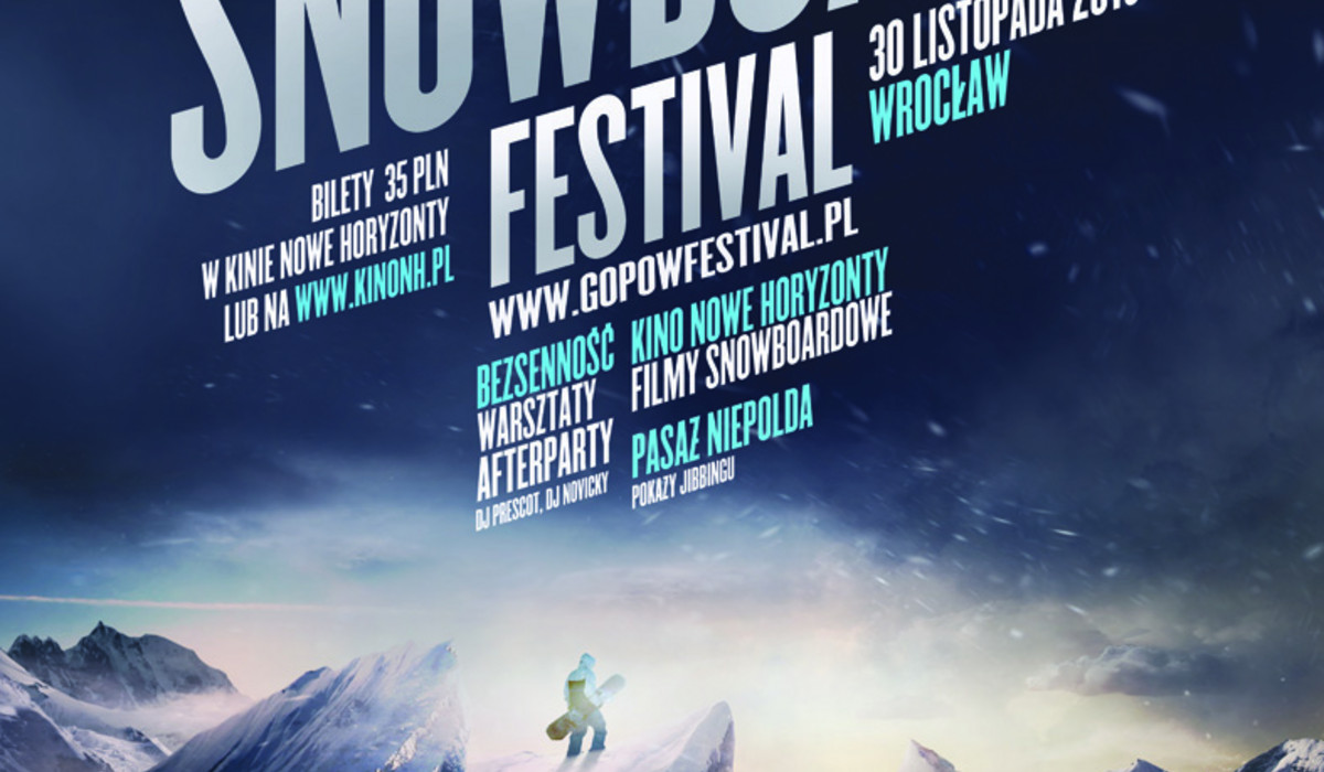 Miłośnicy snowboardu będą mieli okazję w wyjątkowy sposób rozpocząć sezon 2013/2014. 30 listopada we Wrocławiu odbędzie się bowiem pierwsza edycja festiwalu GO*POW all about snow. To wydarzenie unikatowe, gdyż pozwala spojrzeć na deskę z bardzo różnej strony.