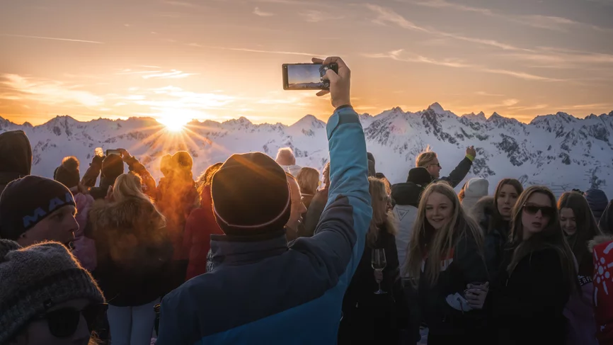 05.04.2024: sun.downer: zachód słońca z atmosferą lounge i koktajlami od 19:00 do 21:00 na Pardatschgrat na wysokości 2624 metrów nad poziomem morza.