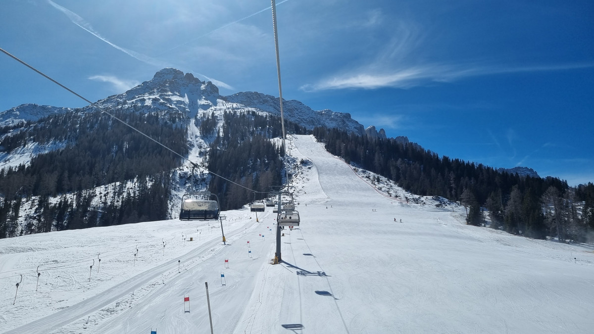 Tym razem na miejsce mieszkania wybraliśmy Tires -u podnóża masywu Rosengarten. To skądinąd urocze małe miasteczko, od sezonu zimowego 2021/2022 zyskało wielką atrakcję: Cabrio cable car. To pierwsza kolej tego rodzaju we Włoszech: dwie duże gondole z tarasem na dachu, z którego można podziwiać widoki na góry na świeżym powietrzu! Dziesięciu pasażerów jednocześnie może cieszyć się jazdą na otwartym górnym pokładzie kabiny, a kolejnych pięćdziesięciu w samej kabinie.