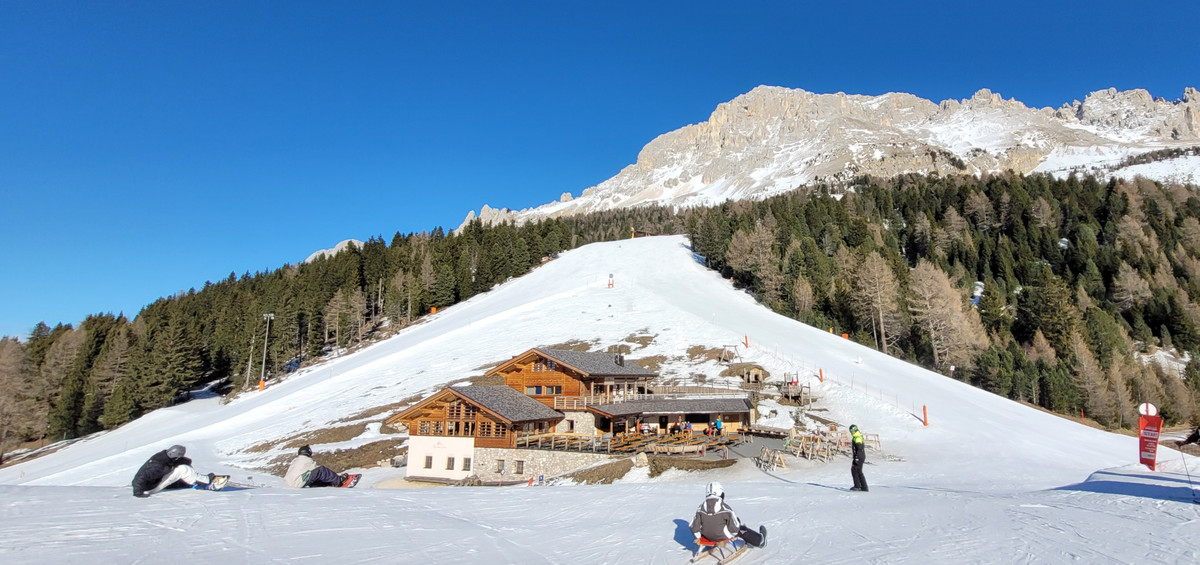 Na trzecie miejsce naszej wiosennej narciarskiej przyjemności wybraliśmy Obereggen – dojazd zajął nam 40 min. W sezonie narciarskim 2022/2023 ośrodek ten świętuje swoje 50-lecie i z tej okazji przygotował wiele atrakcji dla narciarzy i snowboardzistów. Obereggen jest częścią ośrodka narciarskiego Obereggen - Pampeago - Predazzo / Latemar (40 km tras), który uważany jest za jeden z najbardziej śnieżnych i komfortowych obszarów narciarskich w całych Dolomitach i działa w pełni od początku grudnia do ostatniego dnia sezonu. Chociaż ten nowoczesny ośrodek rozciąga się na wysokości od 1600 do 2200 m n.p.m,, to nie trzeba obawiać się braku śniegu do jazdy, ponieważ zdecydowana część stoków jest ośnieżana za pomocą armatek.